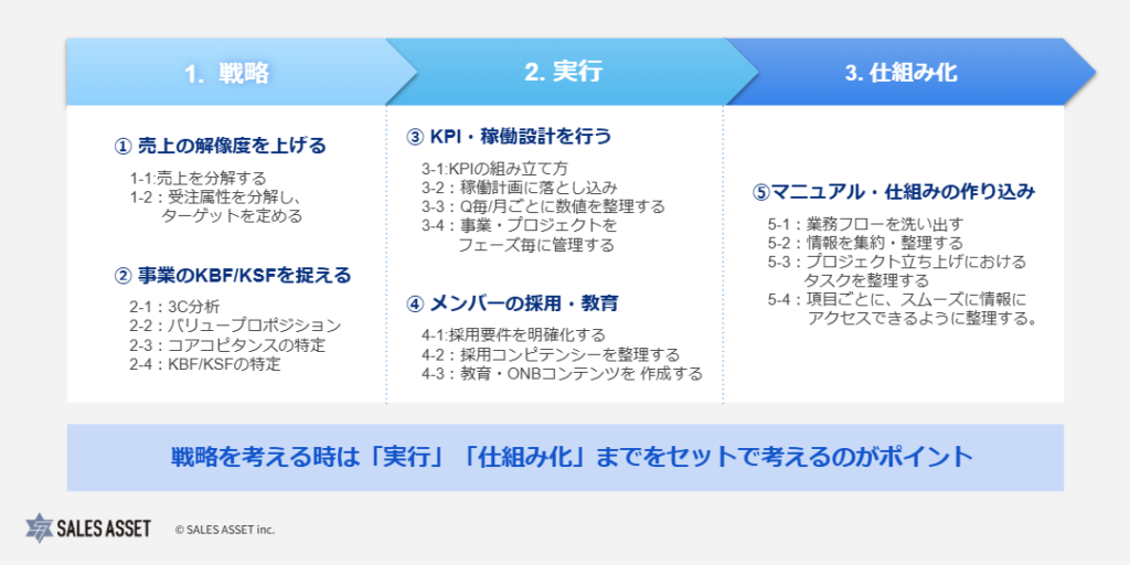そして、明確にしたKBFを基にKSFを設定し、具体的な施策に落とし込むことで、効率的に売上の改善を実現できます。