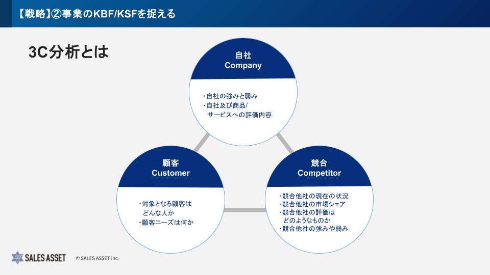 3C分析は、事業のKBFを特定するための基本的なフレームワークとして非常に有効です。